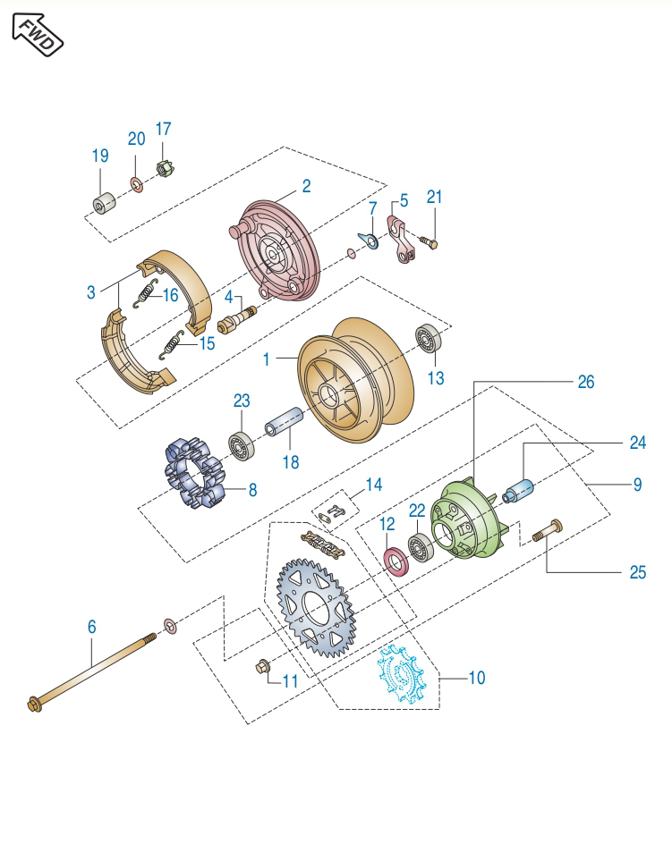 - Dominar 400 UG → Задня ступиця → позначка на цьому фото: 12