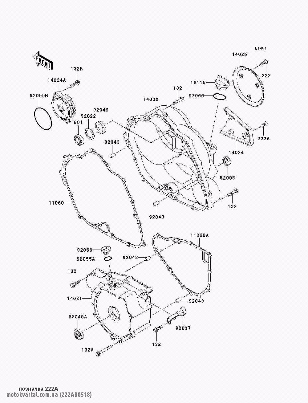- Квадроцикл (ATV) /2001 / Bayou 300 (KLF300-B14) / Engine cover(s)