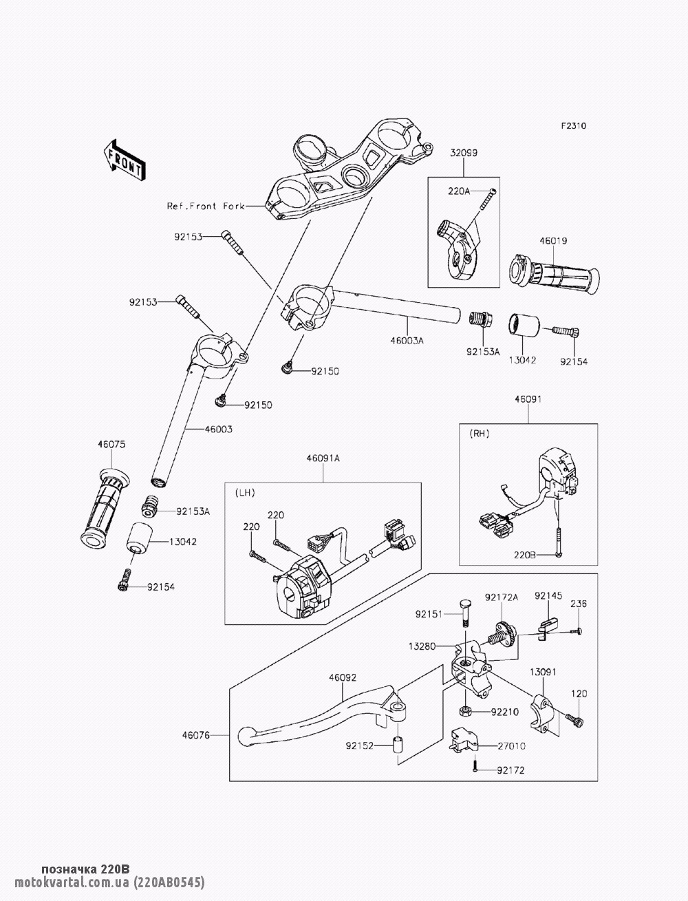 - Мотоцикл /2010 / Ninja ZX-10R (ZX1000-FAF) / Handlebar