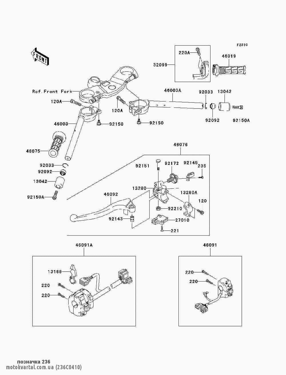 - Мотоцикл /2006 / Ninja ZX-10R (European) (ZX1000-D6F) / Handlebar