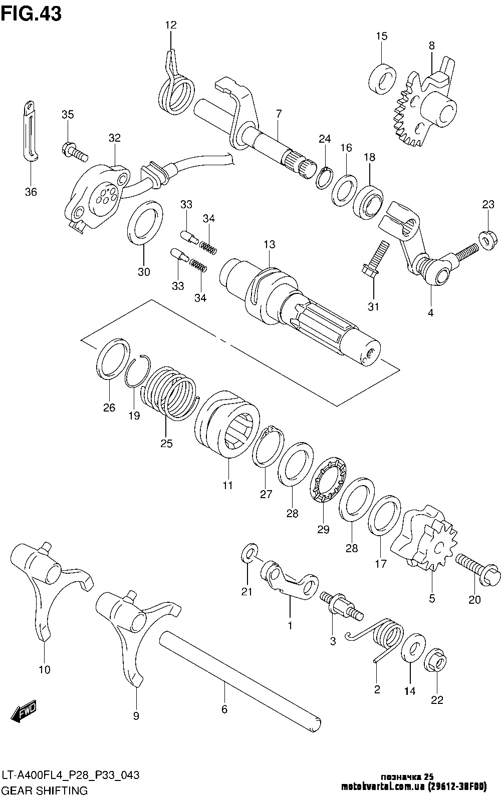 - Квадроцикл (ATV) / 2003 / LT A400F / Gear shifting