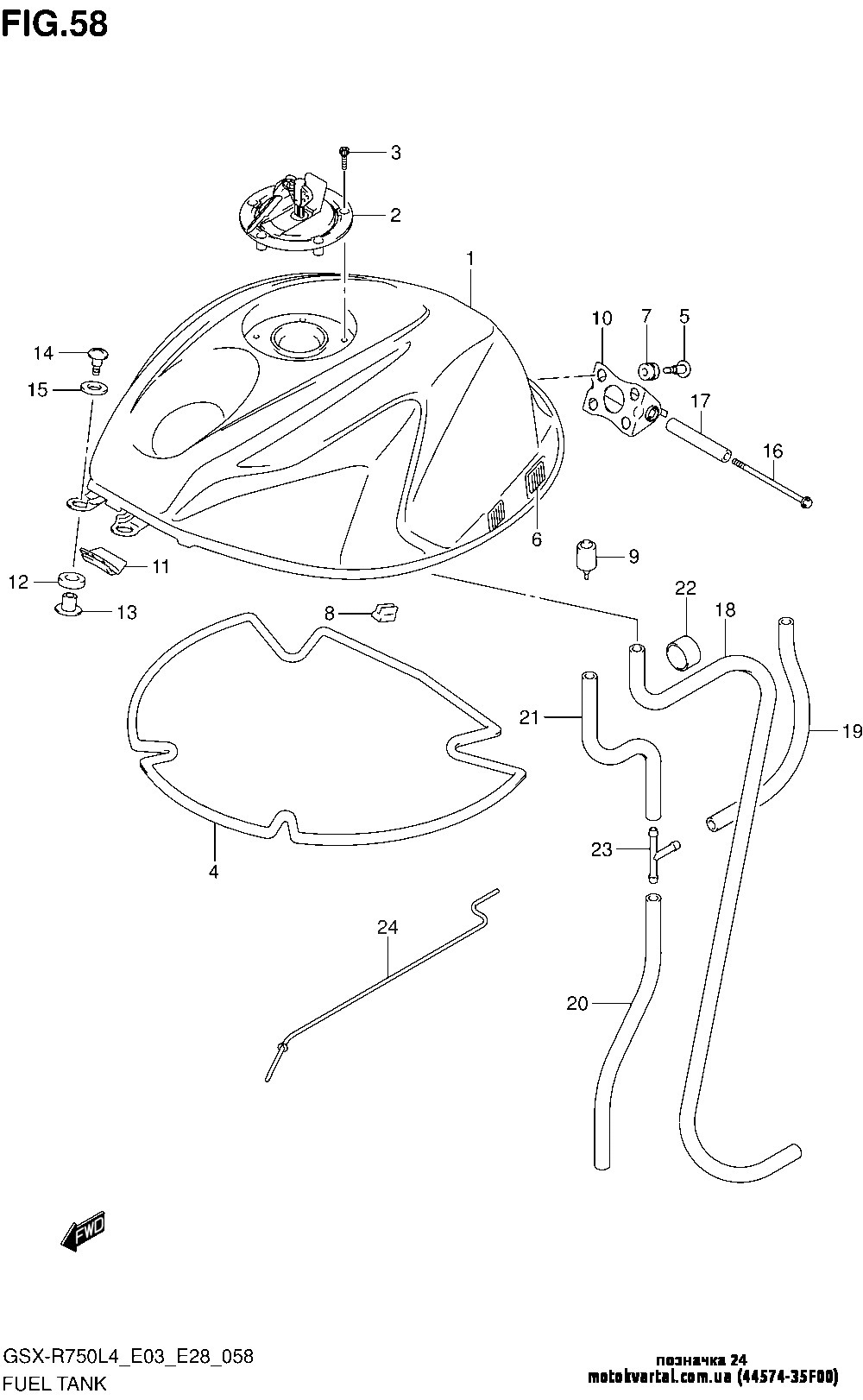 - Мотоцикл / 2011 / GSXR750L1 / Fuel tank (e28)