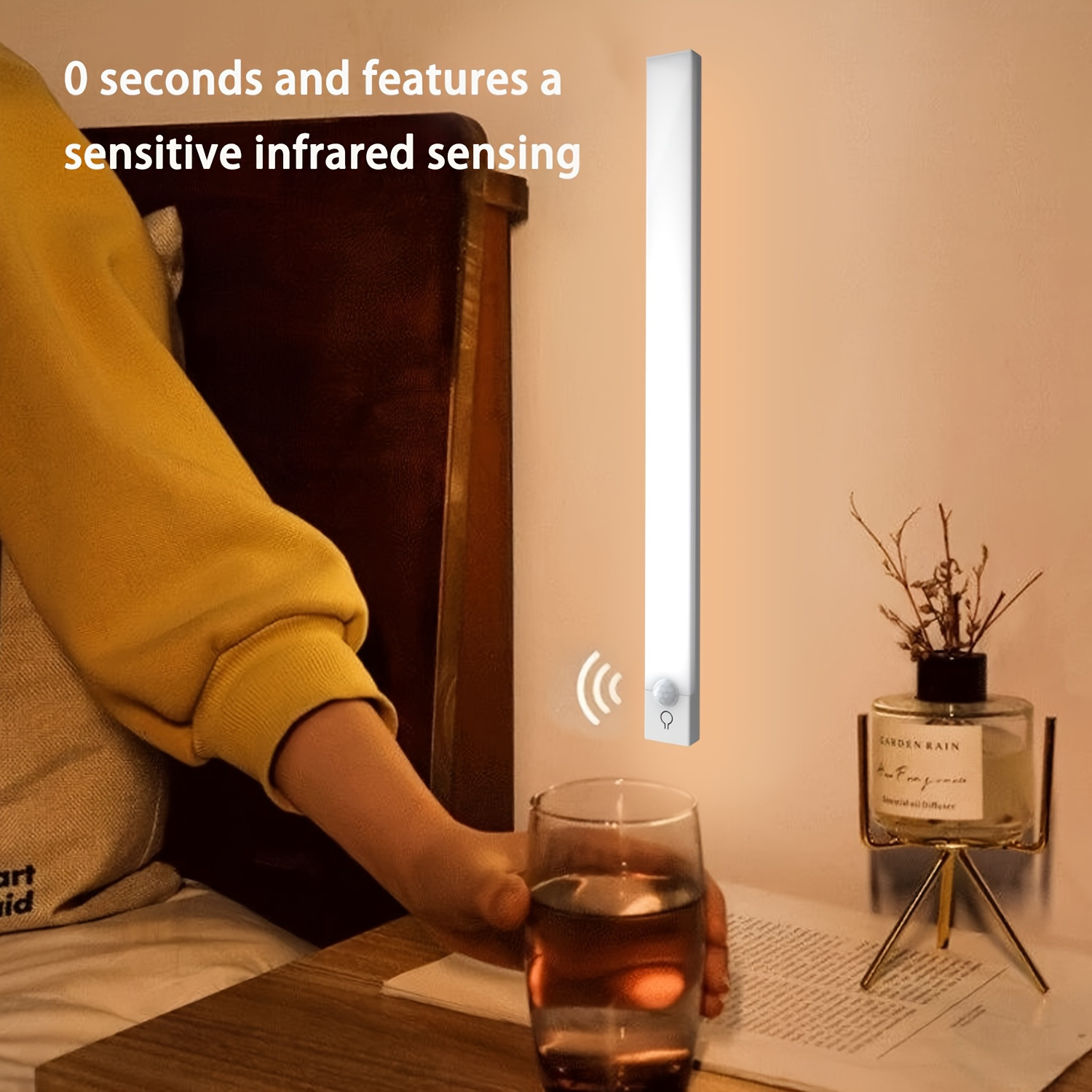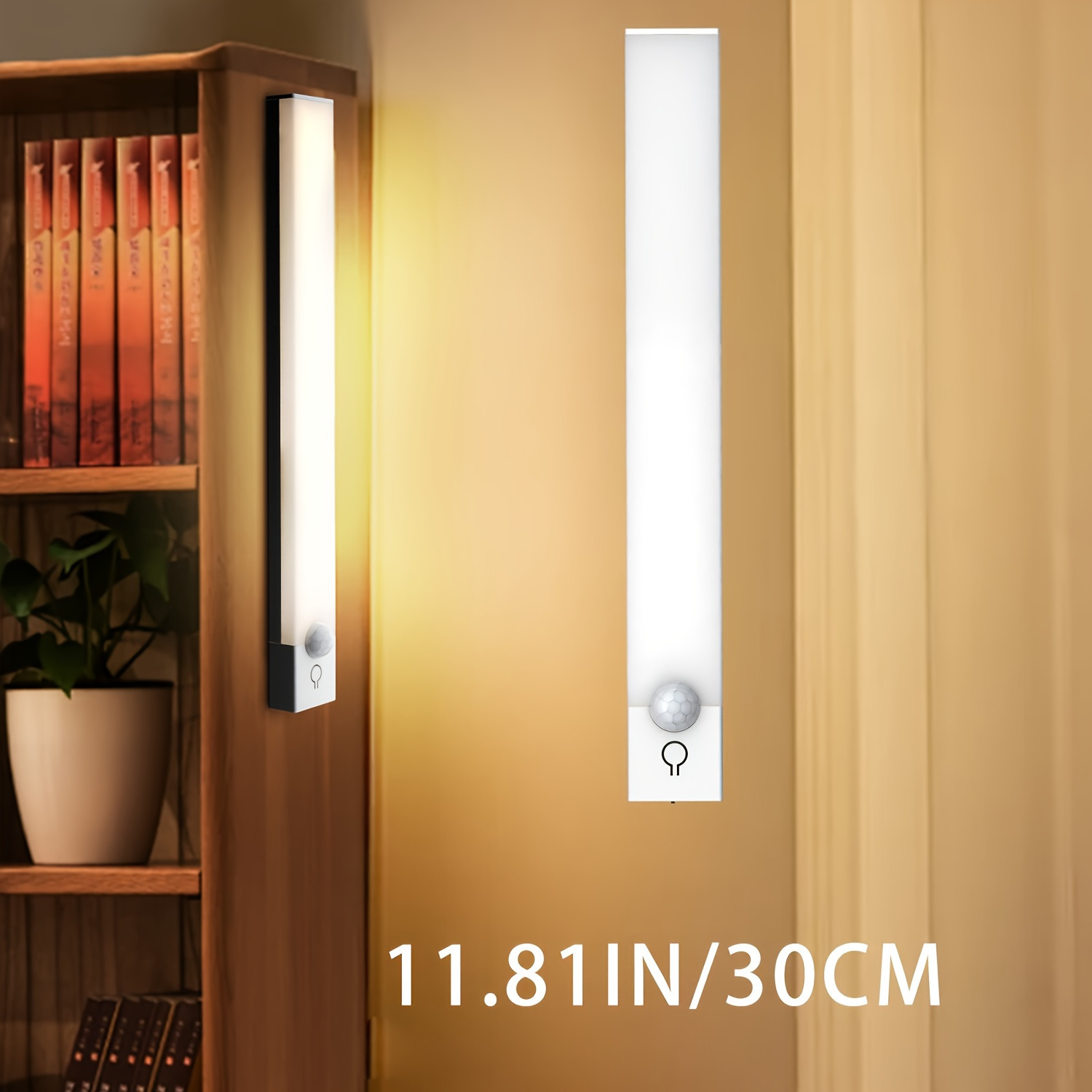 Світлодіодний нічник з датчиком руху — USB Type-C зарядка та батарейна робота. Має магнітне кріплення, 3 кольорові температури світла та ступінчасте регулювання яскравості, ідеальний для шаф, приліжкових тумбочок або читання. Легкий, портативний та зручний у використанні.