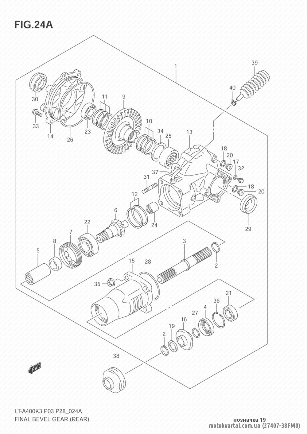 - Квадроцикл (ATV) / 2003 / LT A400F / Final bevel gear (rear)(model k4_k5_k6_k7)