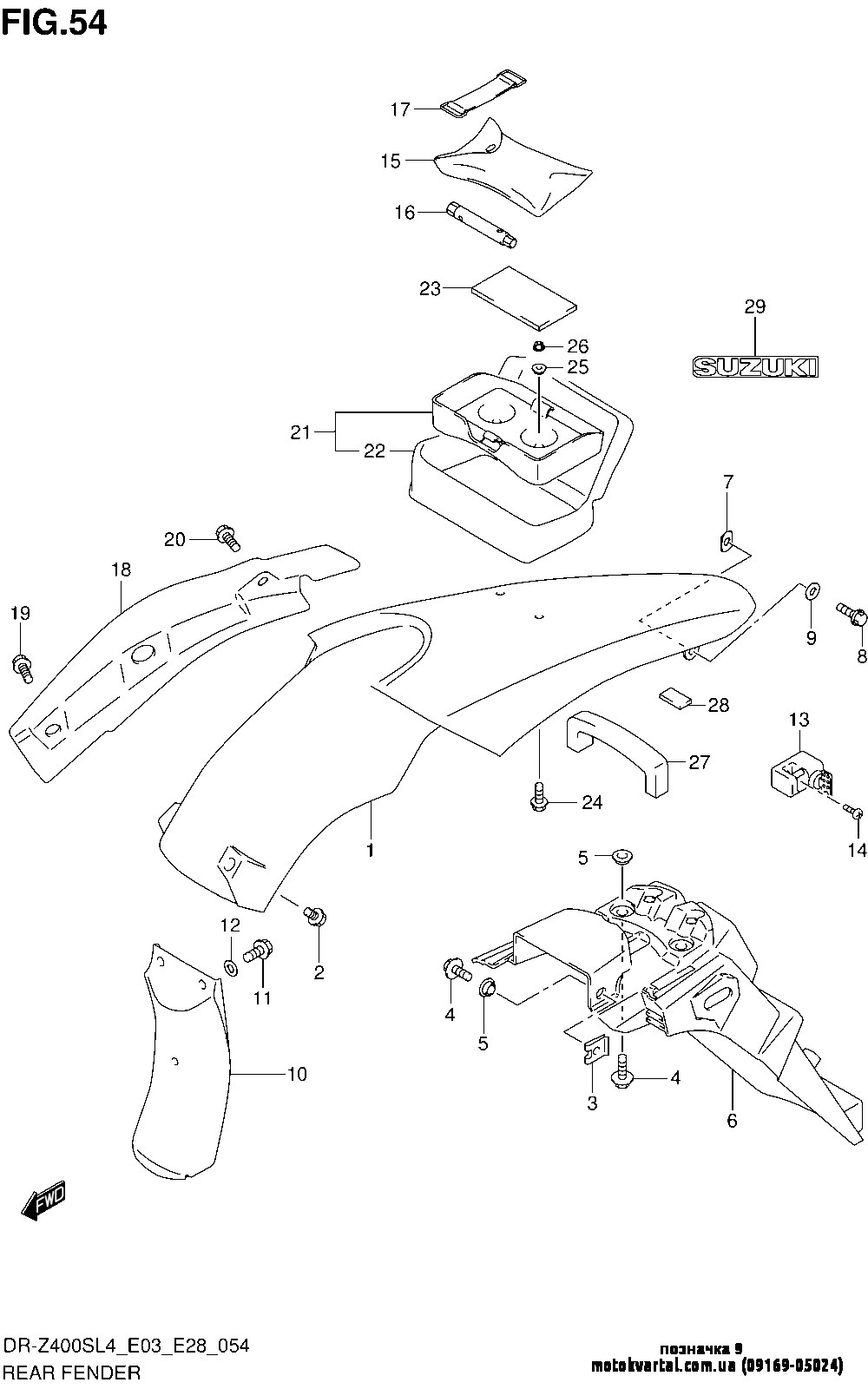 - Мотоцикл / 2009 / DR-Z400SM / Rear fender (model k7_k8_k9)