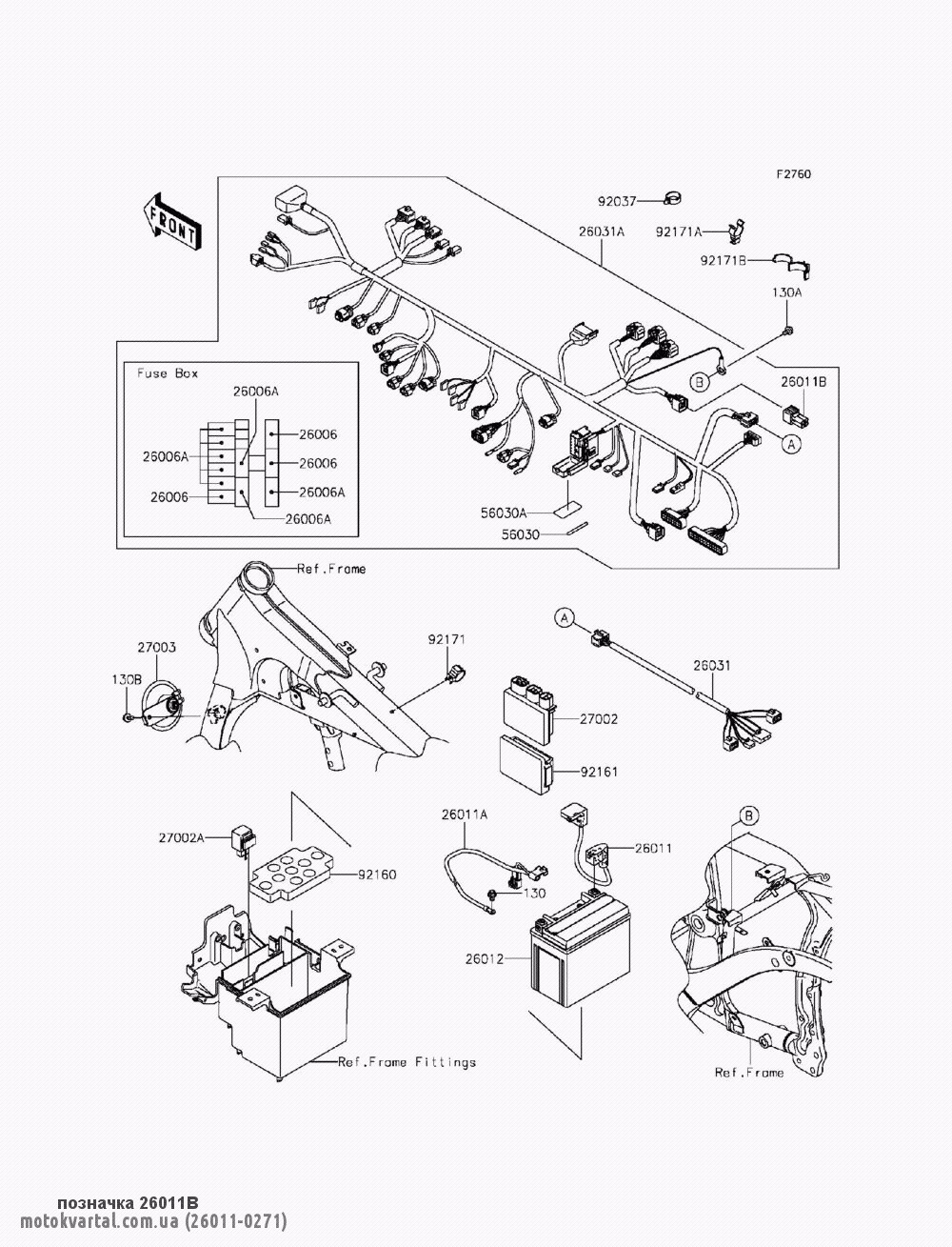 - Мотоцикл /2011 / Ninja ZX-6R (ZX600-RBF) / Chassis electrical equipment