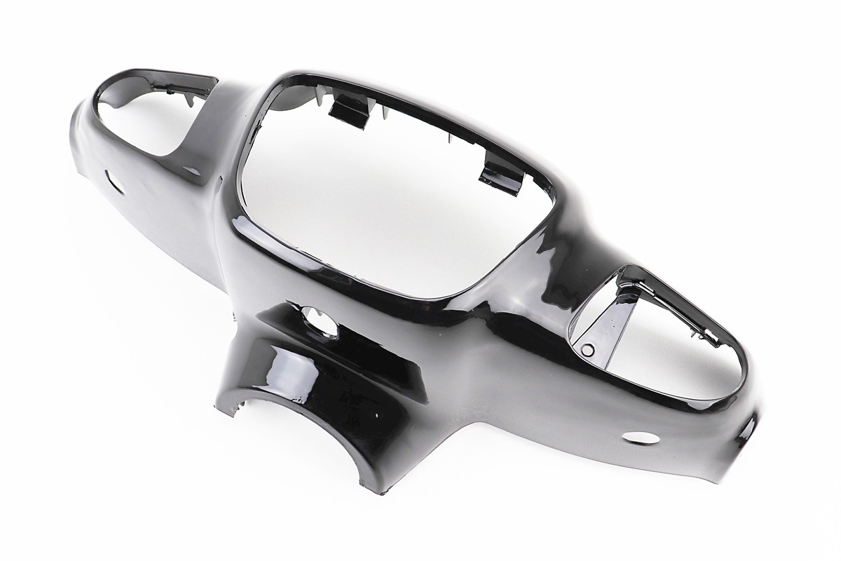Ця деталь служить верхнім облицювальним кожухом передньої частини керма, вміщує приладову панель (спідометр / індикатори) і закриває механічні вузли в передній частині скутера, надаючи йому закінченого зовнішнього вигляду.