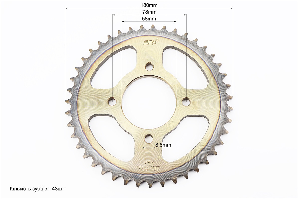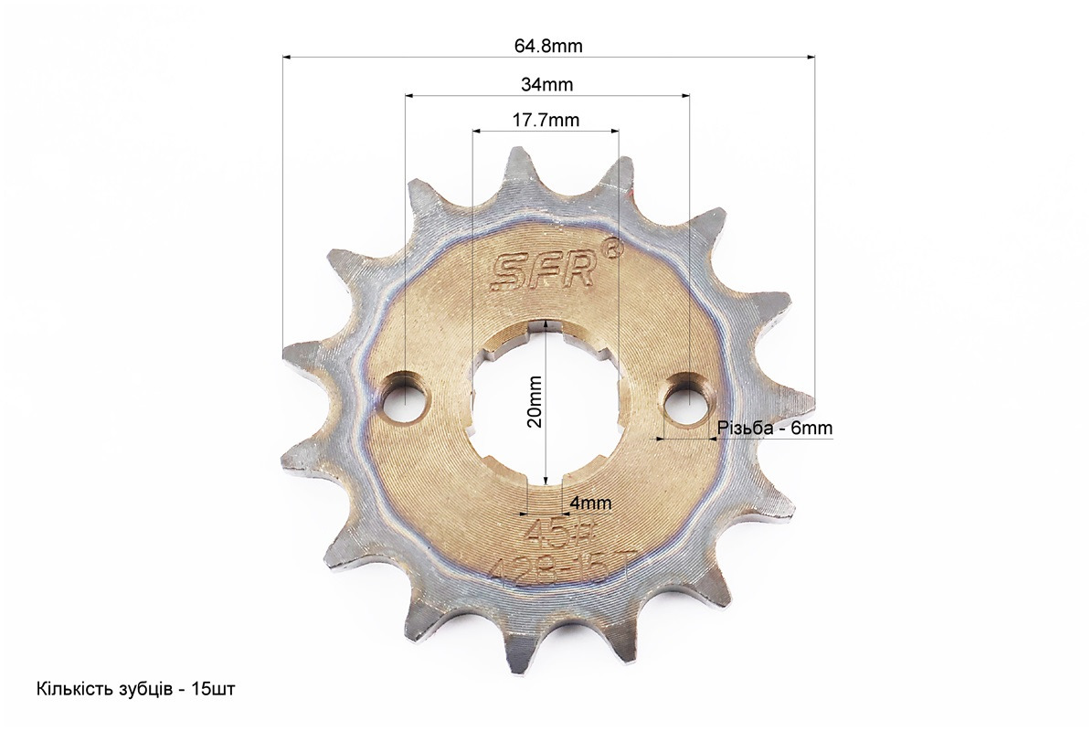 Комплект зірок ZS125J 428H 43T+15T гартовані, (SFR) (3058686)